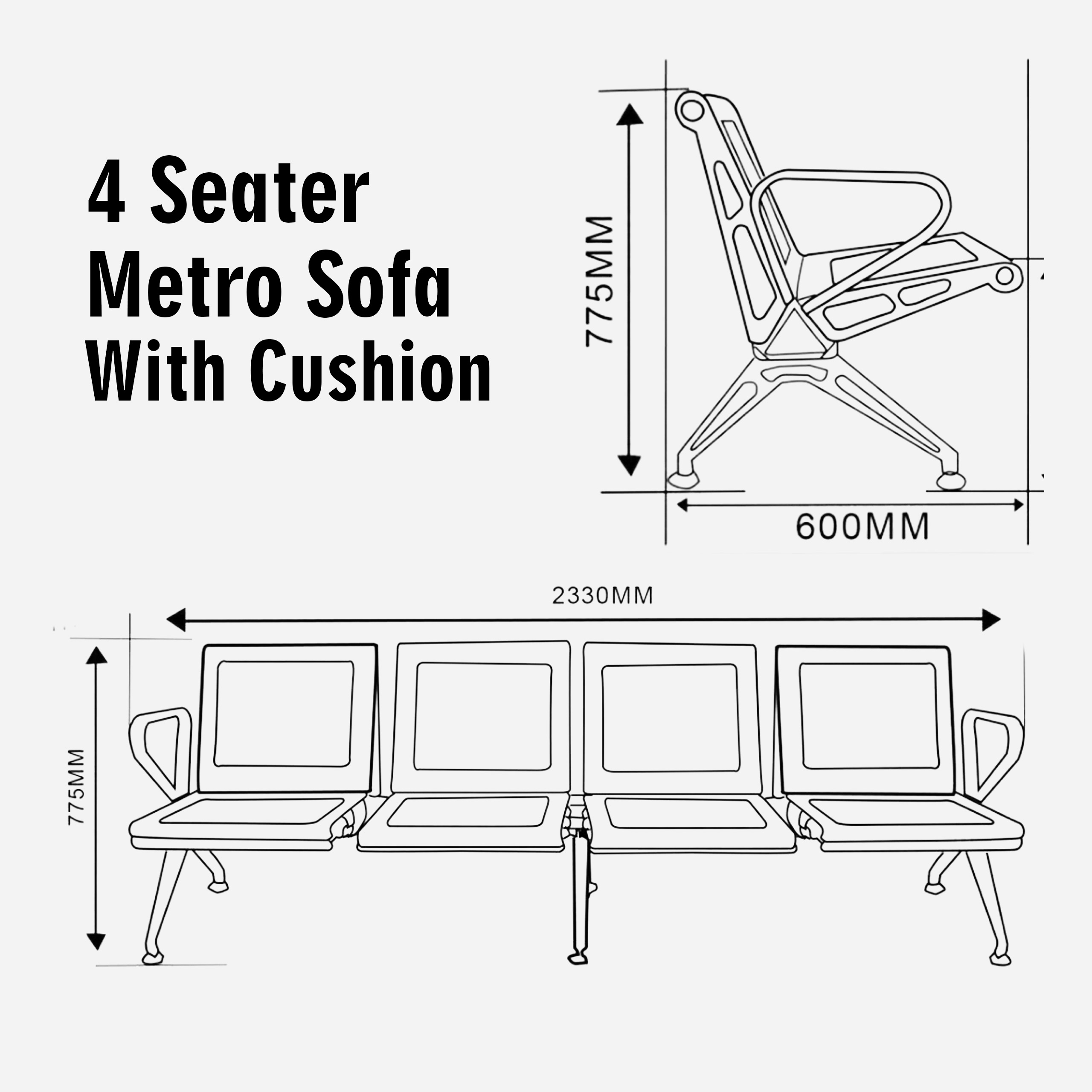 The 4 Seater Metro Sofa with Cushion offers a stylish and comfortable seating solution for larger spaces. With soft cushions and a spacious design, it provides ample room for family or guests to relax. Its modern aesthetic and durable construction make it a perfect addition to any contemporary living room.